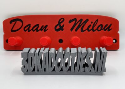 - Personalisatie: Voeg een persoonlijk tintje toe aan je interieur door de naam van je keuze op de kapstok te laten printen. Het kan de naam van een familielid, een vriend of zelfs een speciale datum zijn. Waardoor het een uniek en betekenisvol cadeau wordt.