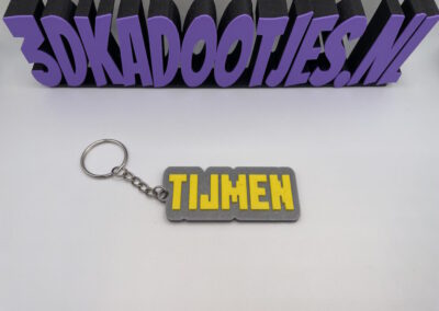 Met een afmeting van 7 bij 3 centimeter is deze sleutelhanger compact, stevig en opvallend. Personaliseer hem met jouw naam of die van een vriend(in), en kies uit diverse kleurencombinaties. Een uniek accessoire voor aan je sleutelbos, rugzak of etui!